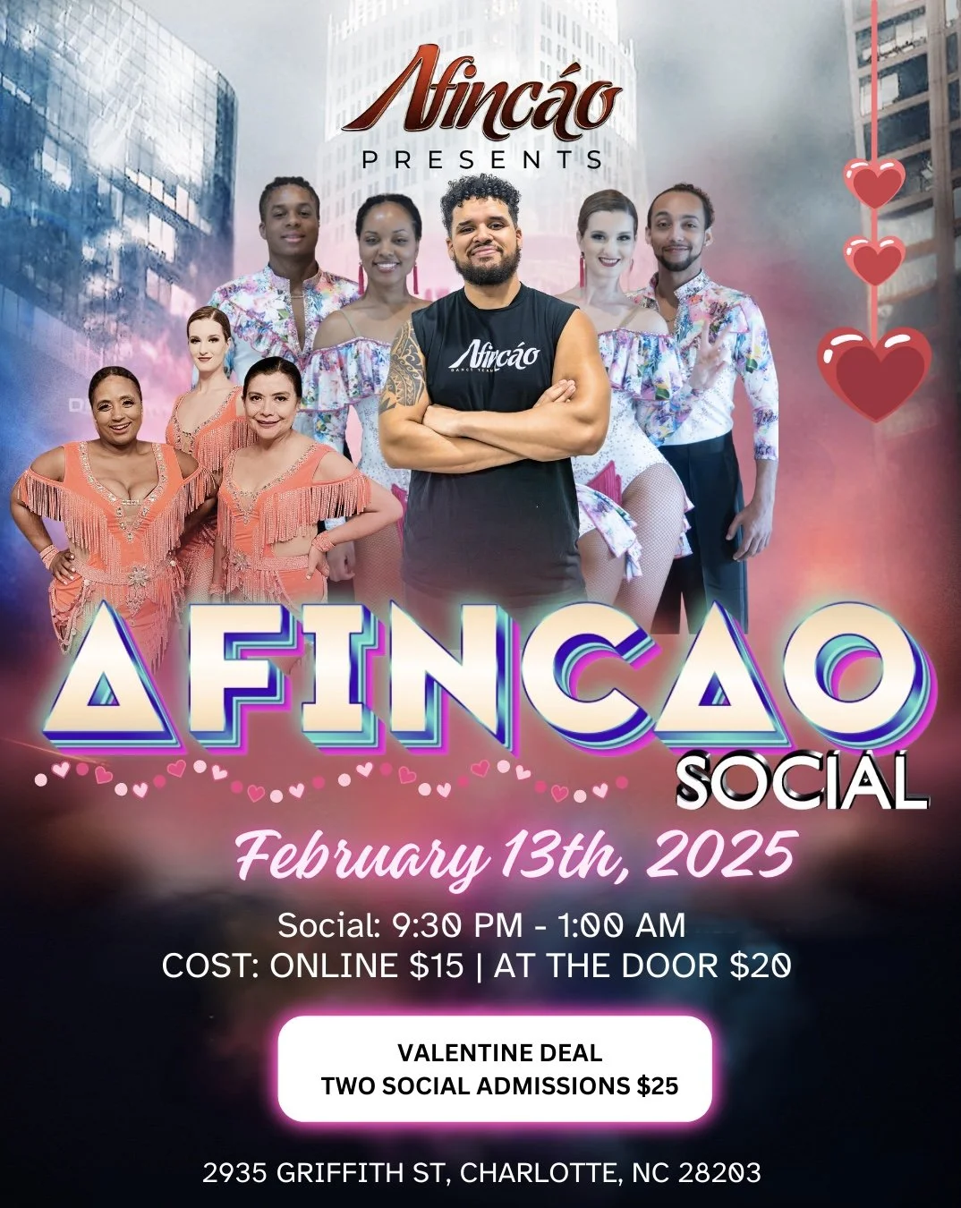 Afincao’s Monthly Social where all of the best dancers from Charlotte and the surrounding areas meet for an incredible night of dancing. The Afincao Social is every dancer’s dream social with great tunes from our resident DJs, a free class before the social, and most importantly an extremely good HVAC unit that will keep you dancing and having fun all night long.